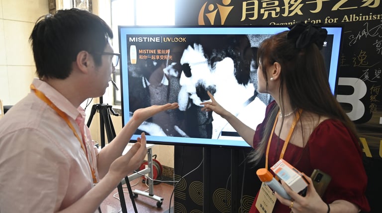 At the 2023 National Albinism Conference held in Xi’an, Shanxi Province, organized by the charity “Moon Child Home,” MISTINE participated as a caring corporate partner. The brand donated sunscreen products to Moon Child Home and provided a specialized UV LOOK camera to visually demonstrate the effectiveness of sunscreen application before and after use. Through this child-friendly, visual approach, MISTINE educated the children on the importance and proper application of sunscreen, taking meaningful action to help them “shield from the sun” with scientific sun protection.