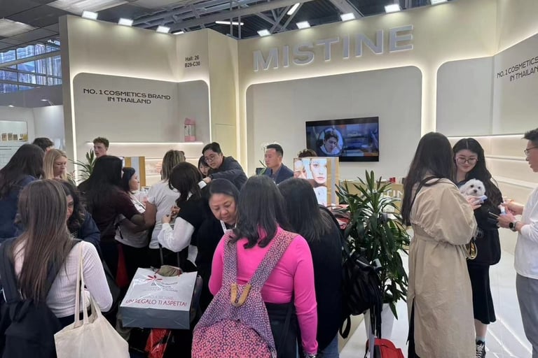 On March 16th, the 54th edition of COSMOPROF Worldwide Bologna, Italy's leading beauty fair, was held at the Bologna Exhibition Center as scheduled. This edition attracted renowned beauty companies from around the world. Among them, MISTINE made its first surprising appearance with its full range of product lines, showcasing customized base makeup products tailored for the international market. This further underscores MISTINE's determination for global expansion and received praise from attendees at the show.