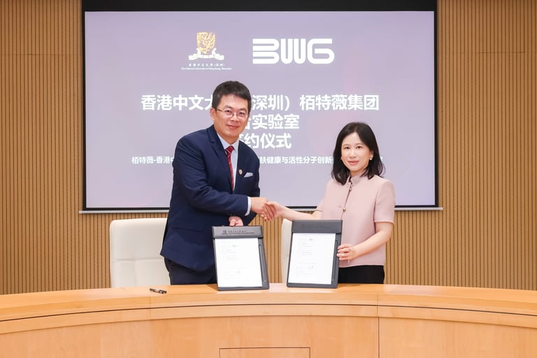 On September 1, 2024, an inauguration and signing ceremony for a joint laboratory was held at the Chinese University of Hong Kong (Shenzhen) between BWC and the university. Together, they established the "BWC - CUHK (Shenzhen) Warshel Joint Laboratory for Skin Health and Active Molecule Innovation" to explore the mechanisms of natural active ingredients (or compounds).