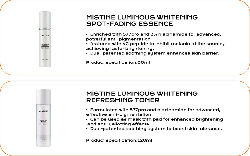 Stop darkening at source and achieve a brighter and more luminous skin in just a few weeks thanks to our patented ultra-whitening formulation. The positive effects are quickly visible: lighter appearance of skin tone, less redness and irritation, as well as blemish elimination.